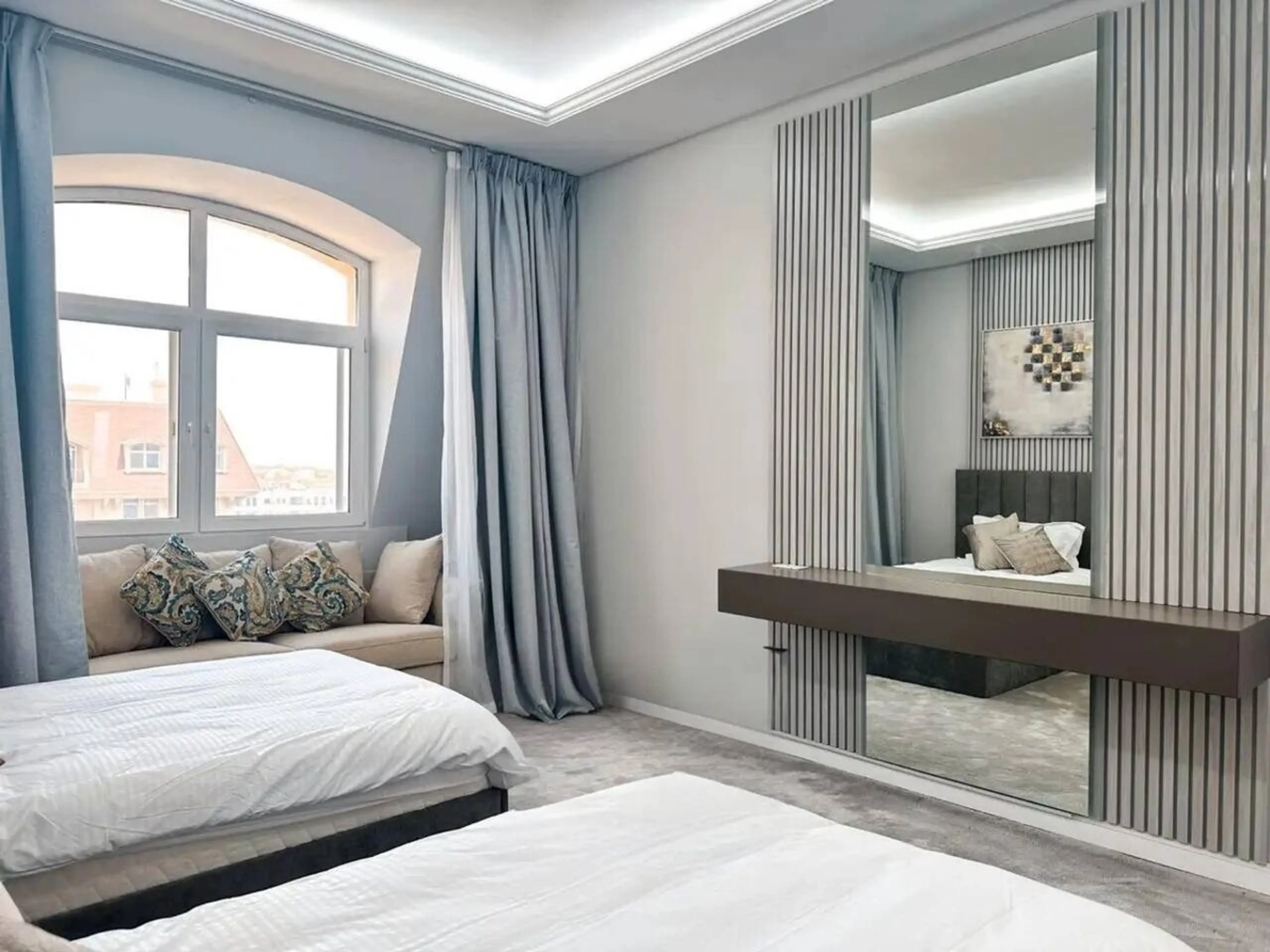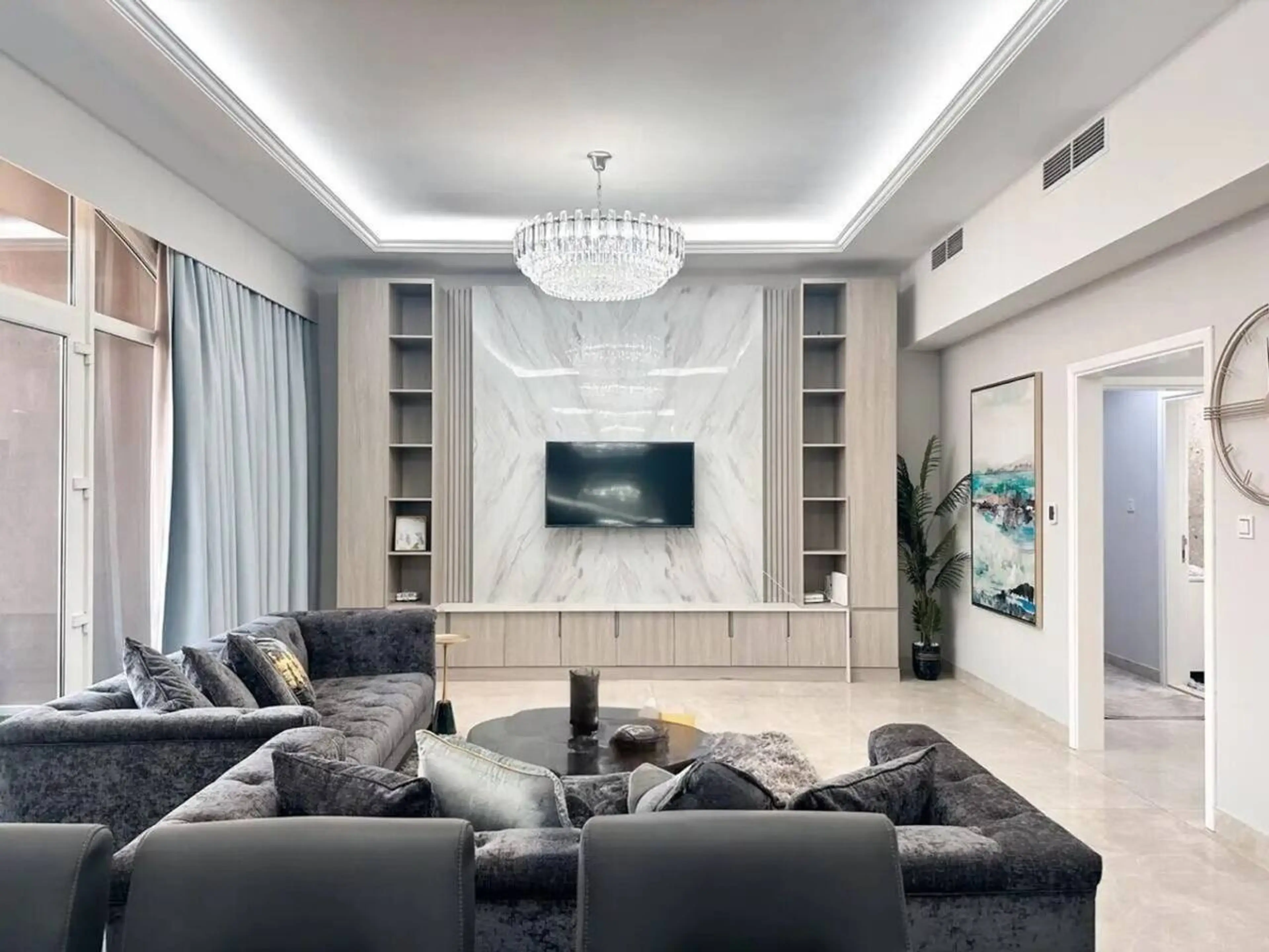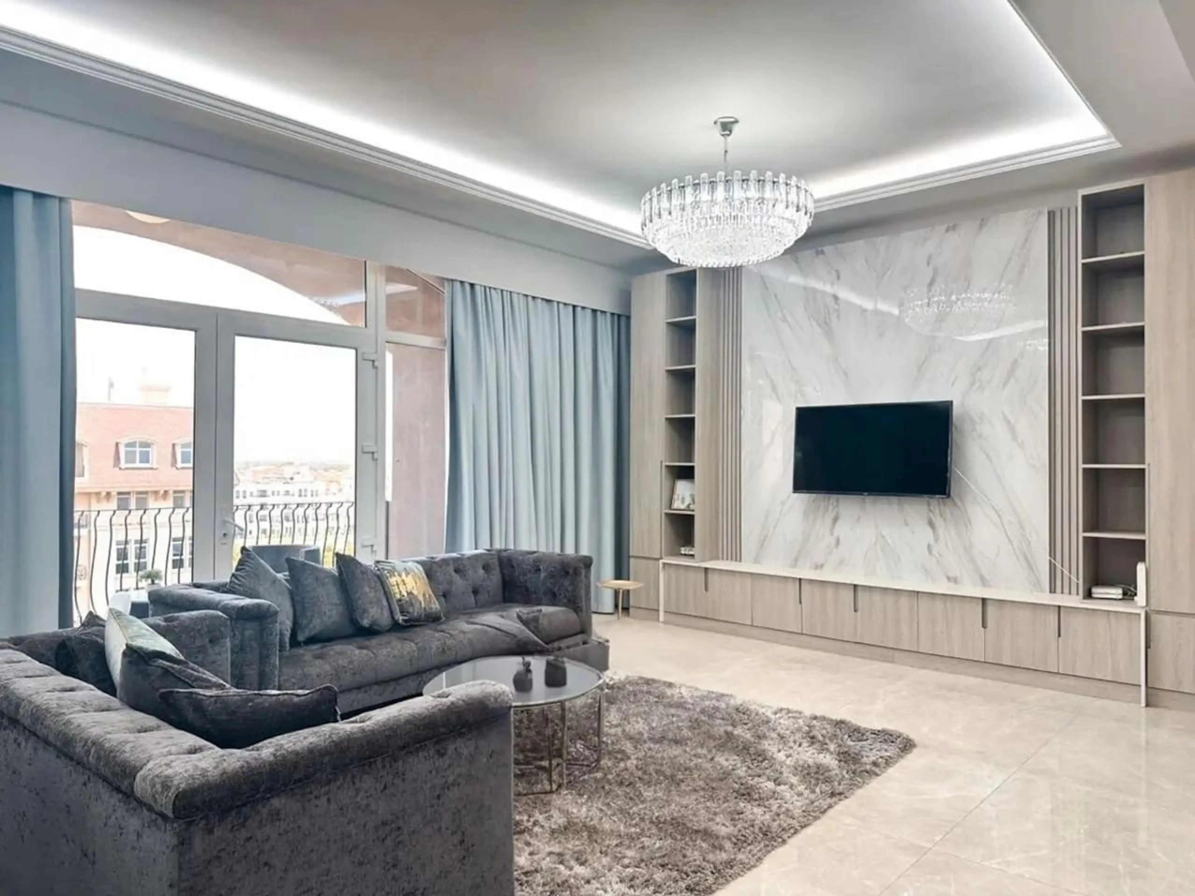 Our fully furnished unit features an open-concept layout with high ceilings and sleek modern design finishes. The living space includes a plush queen-sized bed, spacious wardrobes, a comfortable sofa, a Tv, and a fully equipped kitchen with high-quality appliances. It also features a private balcony...
