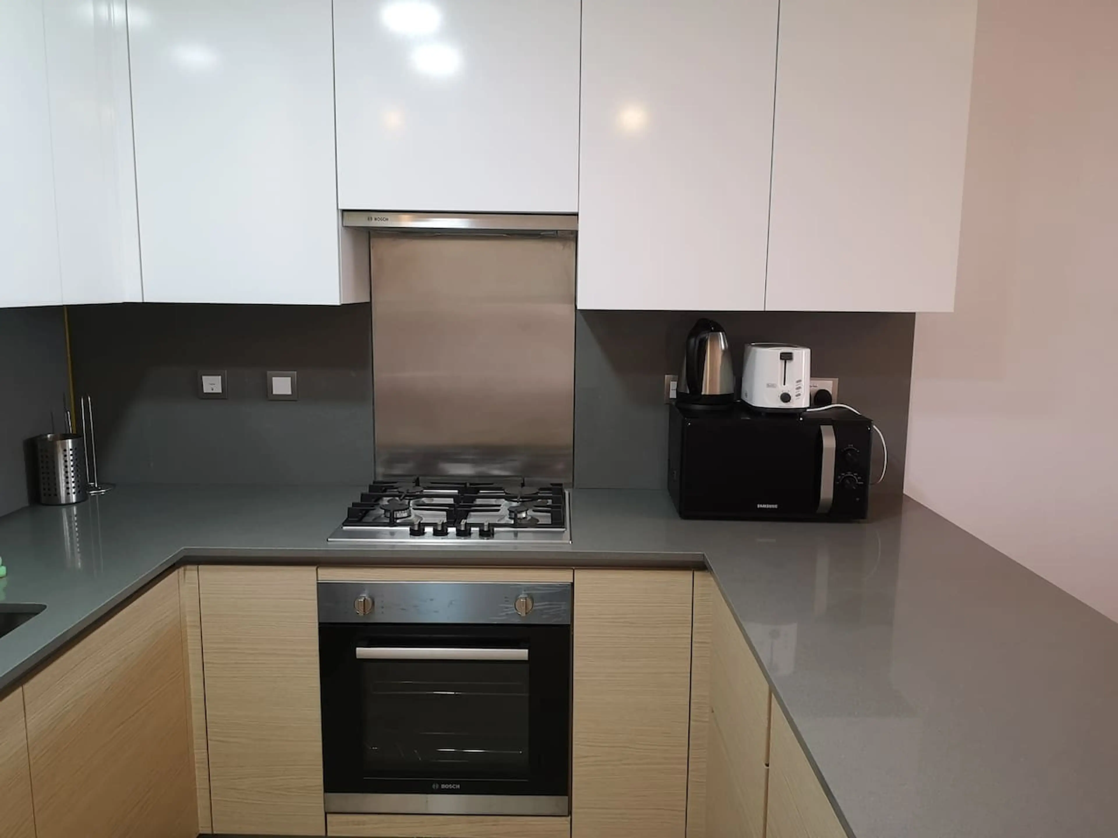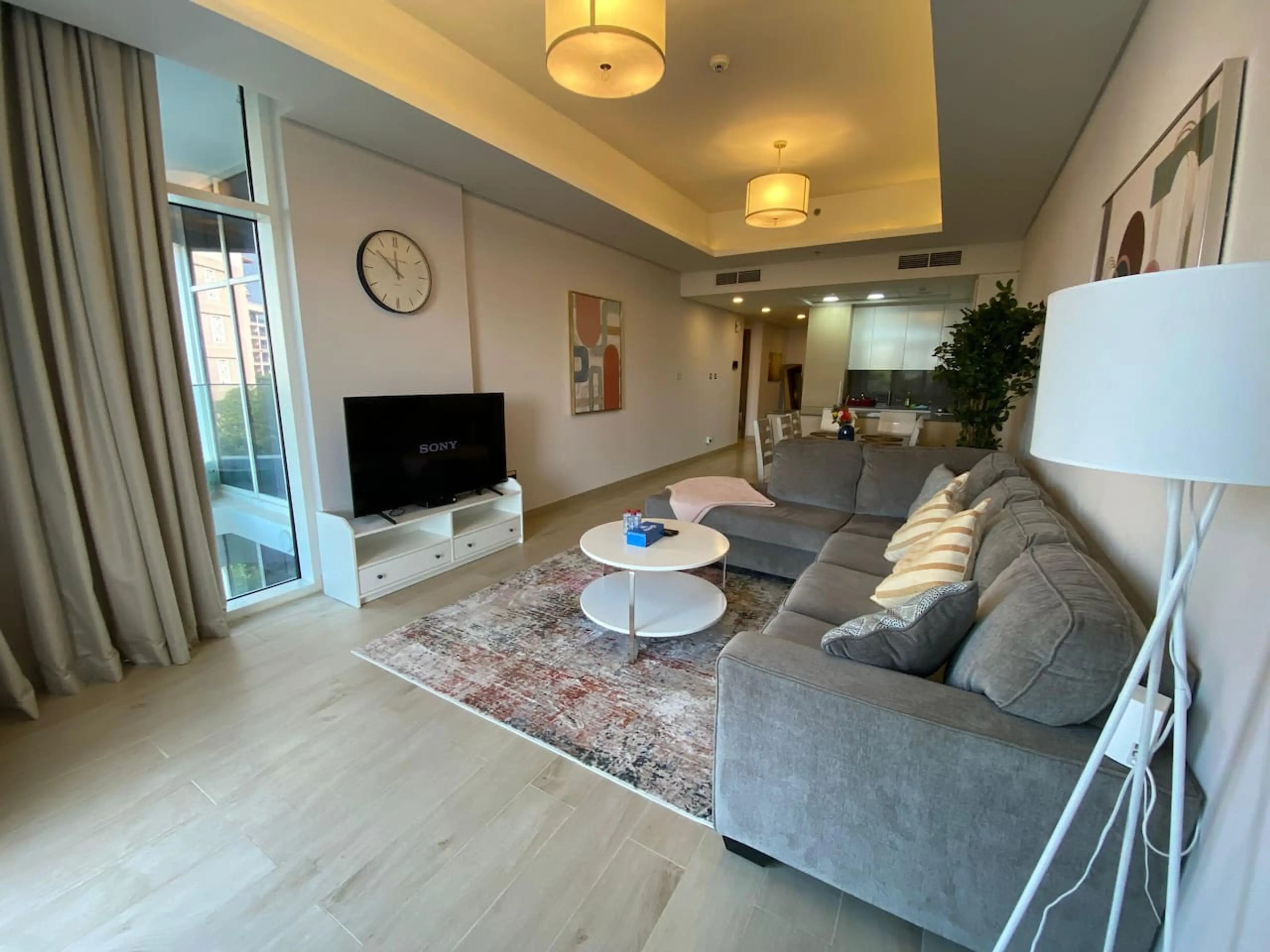 Our fully furnished unit features an open-concept layout with high ceilings and sleek modern design finishes. The living space includes a plush queen-sized bed, spacious wardrobes, a comfortable sofa, a Tv, and a fully equipped kitchen with high-quality appliances. It also features a private balcony...