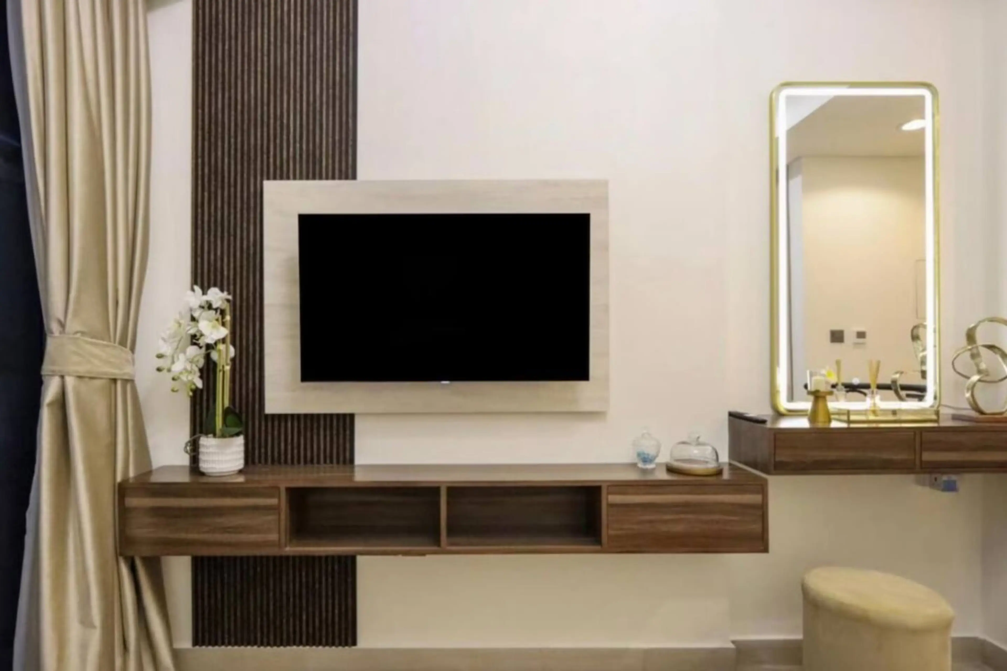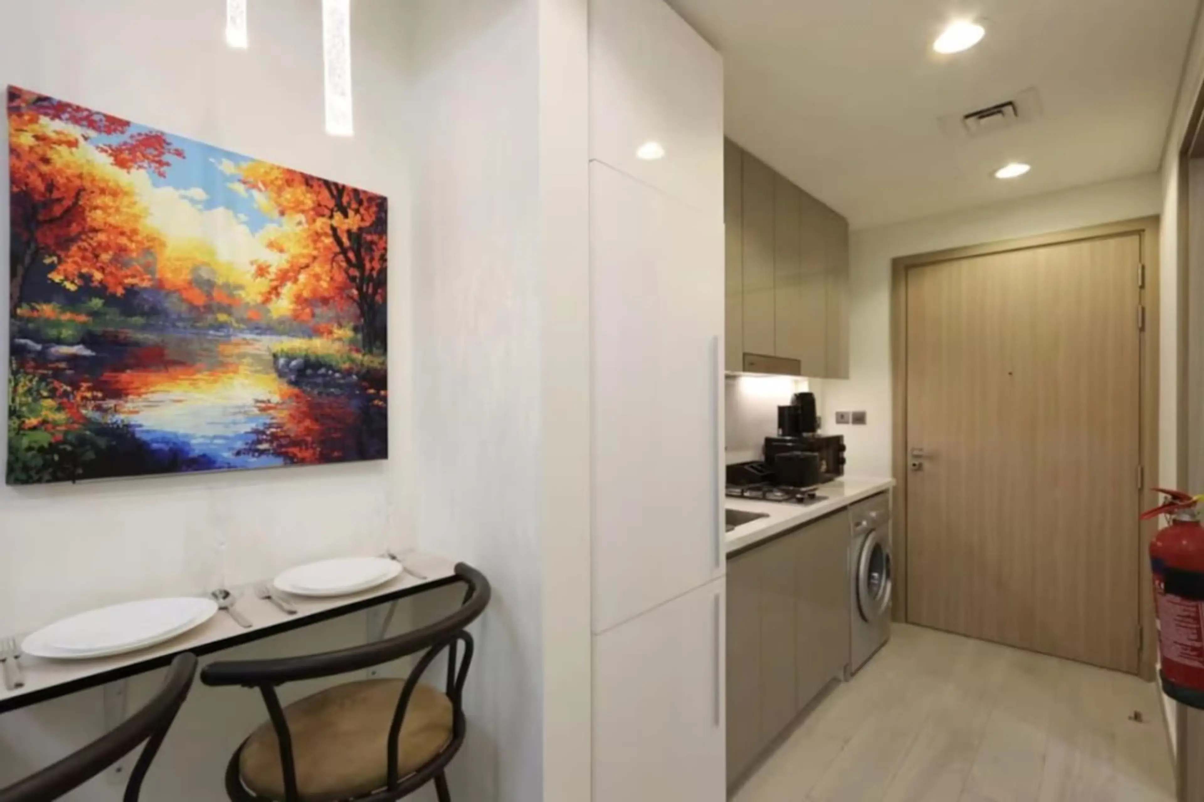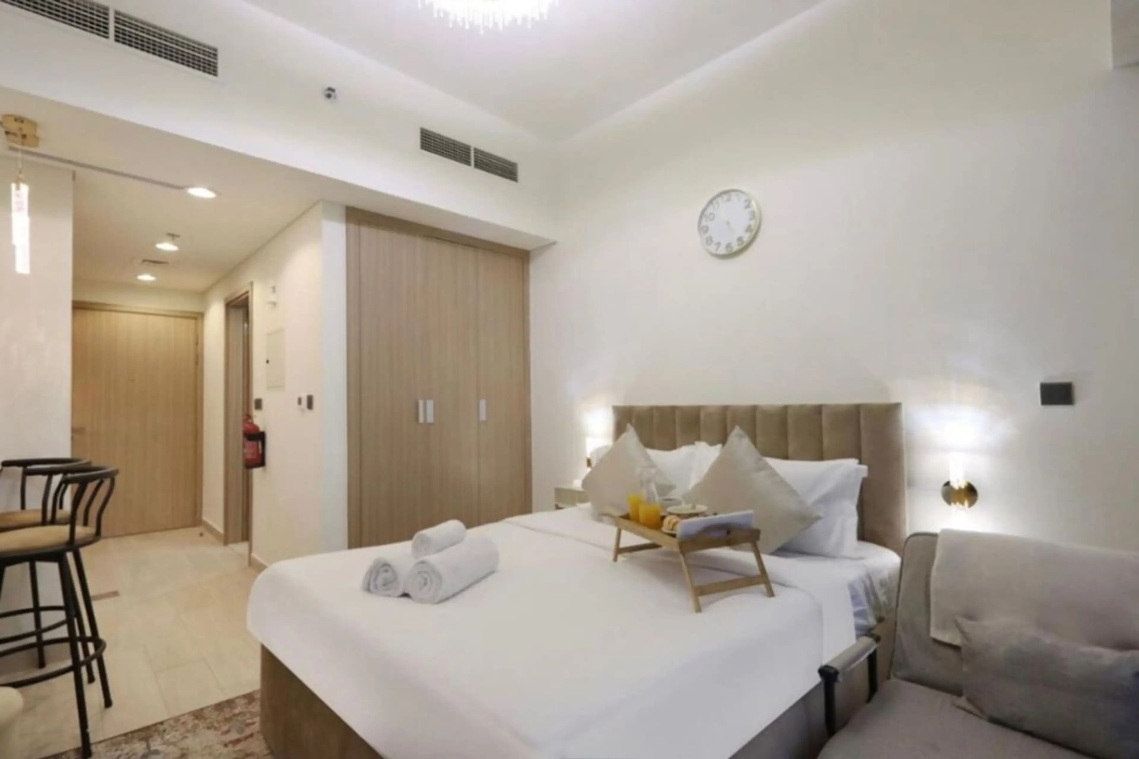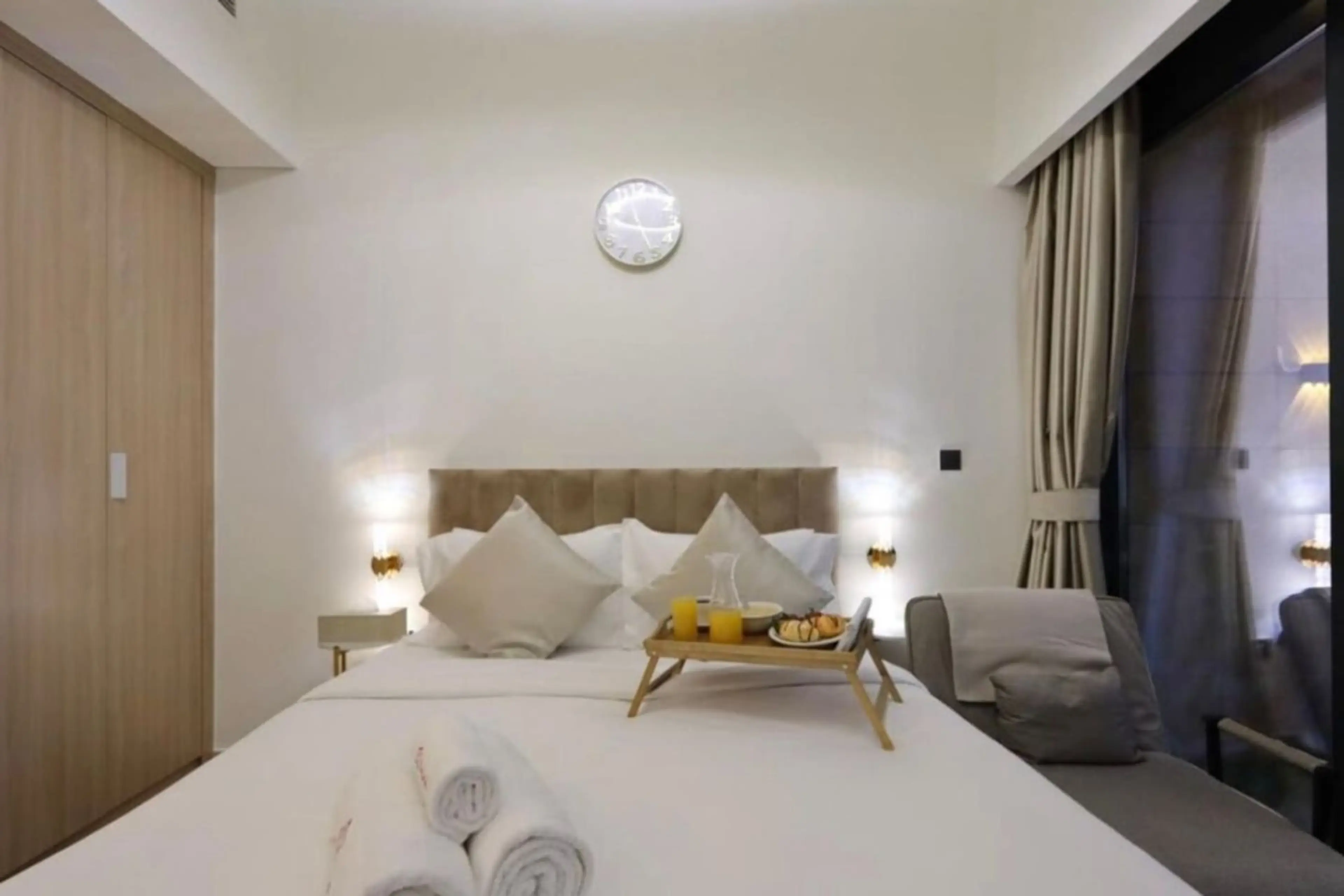 Our fully furnished unit features an open-concept layout with high ceilings and sleek modern design finishes. The living space includes a plush queen-sized bed, spacious wardrobes, a comfortable sofa, a Tv, and a fully equipped kitchen with high-quality appliances. It also features a private balcony...